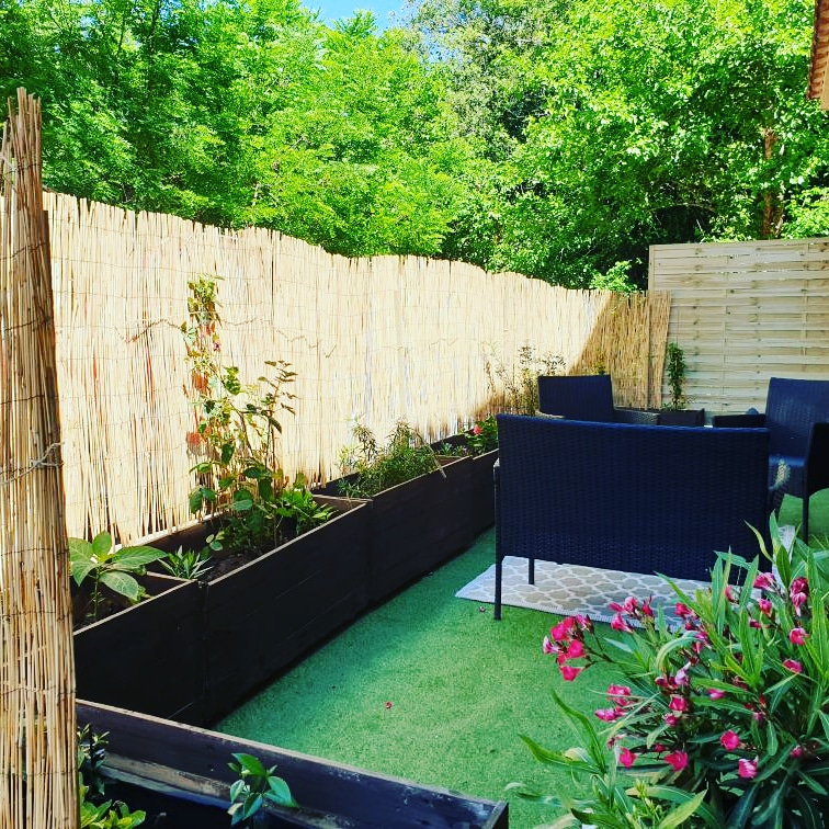 Vous pourrez profiter d’une terrasse privative couverte avec une table, chaises, barbecue et transats.
